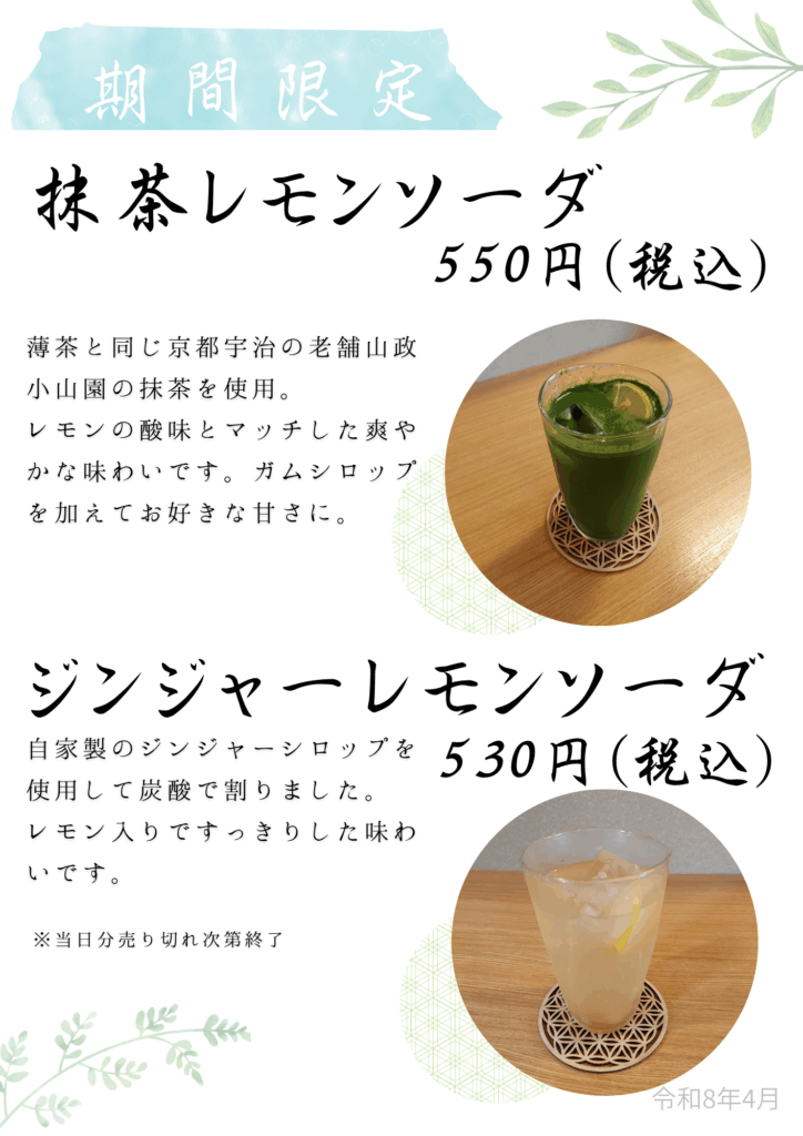 昨年ご好評いただきました、ドリンク4月から期間限定で提供をはじめます!